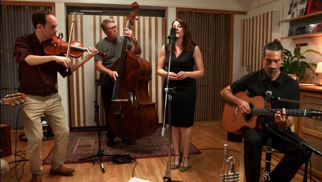 Virginie (chant) – Claude (Contrebasse) – Laurent (Guitare / Trompette / Clarinette) – Cyril (Violon) – Romain (Guitare)